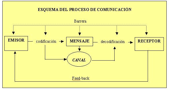 Se refiere a los pasos que se dan entre la fuente y el receptor como consecuencia de la comunicación. Para que la comunicación, se de, se requiere un propósito, expresado a manera de un mensaje a transmitir. Se da entre el transmisor y un receptor. El mensaje se codifica, es decir se convierte en una forma simbólica, después se envía a través de un canal al receptor, quien decodifica o interpreta nuevamente el mensaje original. En consecuencia tenemos una transmisión de significado de un individuo a otro.