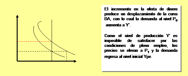 Según Marshall y Pigou, las personas cambiarán ese dinero por bienes y servicios, adelantando para ello las compras de periodos futuros. Como consecuencia de una acción que es generalizada en la economía, la demanda agregada se expandirá y, como la economía nos es capaz de responder a ese estimulo de demanda por estar en pleno empleo, los precios tenderán a elevarse.