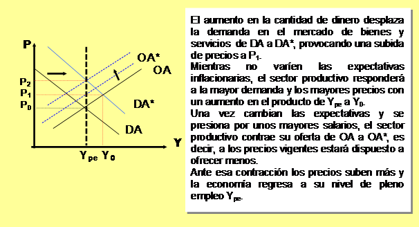Entonces, mientras no varíen las expectativas inflacionarias (lo cual puede esperarse en el corto plazo) los cambios en la oferta monetaria pueden afectar las variables reales: empleo, producción e ingreso: