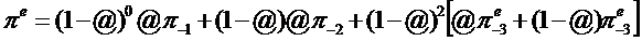 Según la ecuación 10, si se parte de unas predicciones adaptativas, las expectativas inflacionarias terminan siendo un promedio ponderado exponencialmente de las tasas de inflación observadas en el pasado. Dicha ponderación depende directamente del factor de aprendizaje [@], que no es más que la habilidad de los agentes económicos para aprender de sus errores. A su vez, esa ponderación es decreciente[54], lo que significa que los agentes económicos dan más importancia al pasado reciente frente al más lejano.