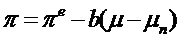 A partir de esta consideración, Friedman replantea la Curva de Phillips incorporando las expectativas inflacionarias y la tasa natural de desempleo[55] (tasa de desempleo de pleno empleo) - mn; esto último dada su defensa de la tradición neoclásica según la cual las fuerzas del mercado conducen las economías hacía el pleno empleo (ecuación No 11).