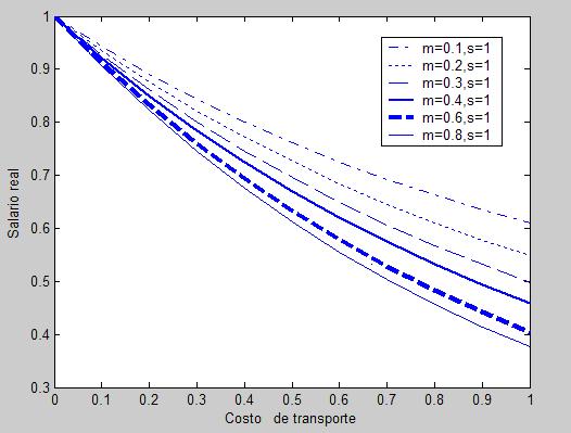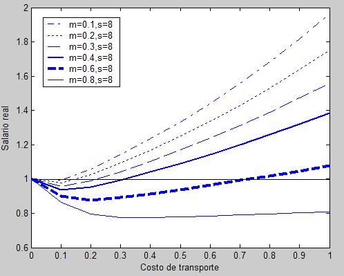 Panel de graficas del efecto de los costos de transporte sobre los salarios reales