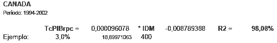 El cuadro de aplicación del IDM para Canadá y la función [1] estimada presentan los siguientes resultados:
