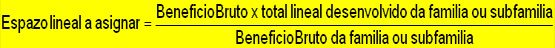 Pódese calcular o espazo a asignar ó lineal a unha familia, subfamilia proporcionalmente a súa cifra de vendas e segundo o beneficio bruto: