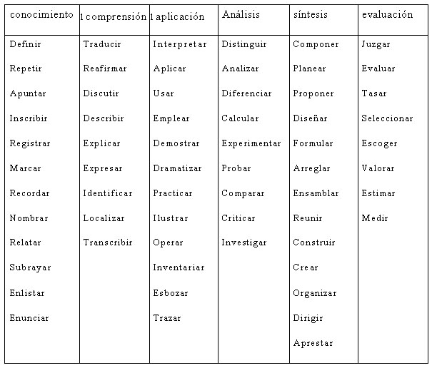 En la formulación de los objetivos se utilizan verbos, en infinitivo, es decir, con verbos no conjugados, aunque en la obra de Benjamín Bloom (1960) es una clasificación de metas educativas y no como una guía para la redacción de objetivos para la investigación, se puede sugerir la utilización, para facilitar la redacción, estos pueden ser: