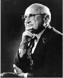 Milton Friedman (1912), profesor de la Universidad de Chicago, luego al servicio del Instituto Hoover sobre la Guerra, la Revolución y la Paz, promotor diligente, y hasta infatigable, de la orientación que vendría a colmar el vacío dejado por Keynes, especialmente en los países de habla inglesa.