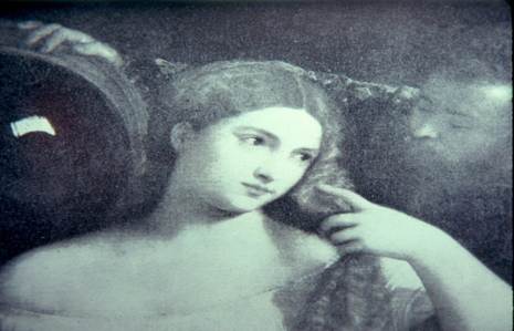 En La Diana, la acción de la pastora de contemplarse en el espejo en vez de mirar a Sireno parece recrear la situación representada en este cuadro, en el que el hombre “está tan oculto en la sombra…que, a pesar de su presencia, la mujer parece hallarse sola con sus pensamientos.” En La Diana la acción de la pastora revela lo ténue de sus relaciones con Sireno incluso al comienzo de éstas, lo que anticipa la inconstancia de la joven y, a la vez, subraya la inutilidad de cualquier empresa humana, lección evocada de forma vívida por la heroína de Ticiano, la cual, según opinión de Panofsky, parece dirigirse al espectador con una actitud que bien podría significar: “Quizás eres lo que somos ahora, pero pronto tú y yo dejaremos de amar y de vivir”. Este mensaje puede aplicarse también a la novela de Montemayor, ya que Diana y Sireno dejan de amar: ella a su esposo, Delio; él a Diana, y, sin amor, ambos serán relegados al olvido.