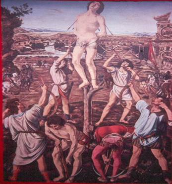 Otro paralelo con las artes visuales lo ofrece la aparición mágica de Arsenio sosteniendo una ballesta. Empleada extensivamente desde la época de la dinastía Han, de China, la ballesta era una de las armas más utilizadas en la Edad Media. Su empleo se había extendido de forma tan alarmante por toda Europa que el Papa Inocencio II decretó que esta arma era “demasiado bárbara para ser utilizada por un cristiano contra otro.” Podemos ver una ballesta en la ilustración titulada Cazador disparando una ballesta, en Les Chroniques d’Anglaterre (Fig. 46), y podemos darnos cuenta de lo cruel que es este arma en una obra de Antonio y Piero del Pollaiuolo, El martirio de San Esteban, en el que dos ballesteros preparan sus armas mientras otros disparan sus flechas a la espalda del santo (Figs. 47 & 48).